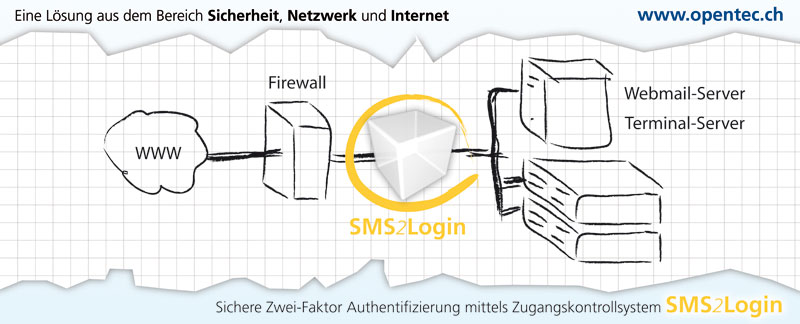 SMS2Login, die sichere Zwei-Faktor Authentifizierung. Schützen Sie ihre vom Internet erreichbaren Serverdienste einfach und ohne grossen Aufwand mittels Einmalpasswort als "ZWEITEN" Faktor. Ideal für Terminal Server, Citrix, Remote Desktop, Web-Server (Intranet / Extranet).